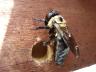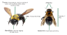 Carpenter bees do not live in colonies like honeybees or bumblebees. The adults overwinter individually, often in previously constructed brood tunnels. Those that survive the winter emerge and mate the following spring. Fertilized female carpenter bees then bore into wood, excavating a tunnel to lay their eggs. The entrance hole in the wood surface is perfectly round and about the diameter of your little finger. Coarse sawdust may be present below the opening, and tunneling sounds are sometimes heard within the wood. After boring in a short distance, the bee makes a right angle turn and continues to tunnel parallel to the wood surface. Inside the tunnel, about five or six cells are constructed for housing individual eggs. Working back to front, the bee provisions each cell with pollen (collected from spring-flowering plants) and a single egg, sealing each successive chamber with regurgitated wood pulp. Hatching and maturation occurs over several weeks, with the pollen serving as a food source for the developing larvae. Later in the summer, the new generation of adult bees emerge and forage on flowers, returning to wood in the fall for hibernation.